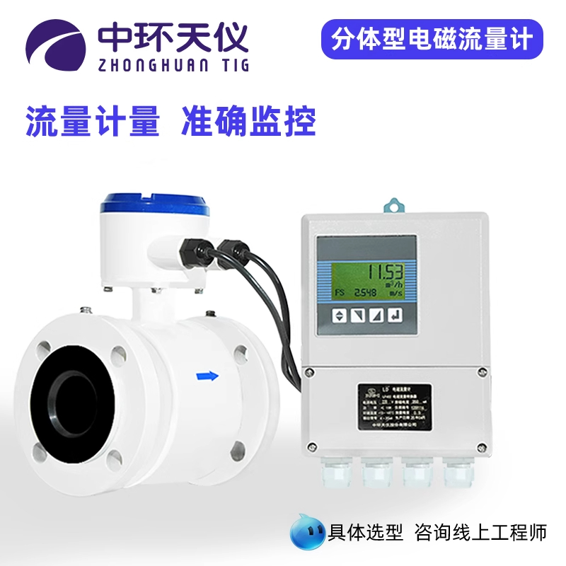 中环天仪高精度智能数显管道式分体式电磁流量计流量仪表法兰连接