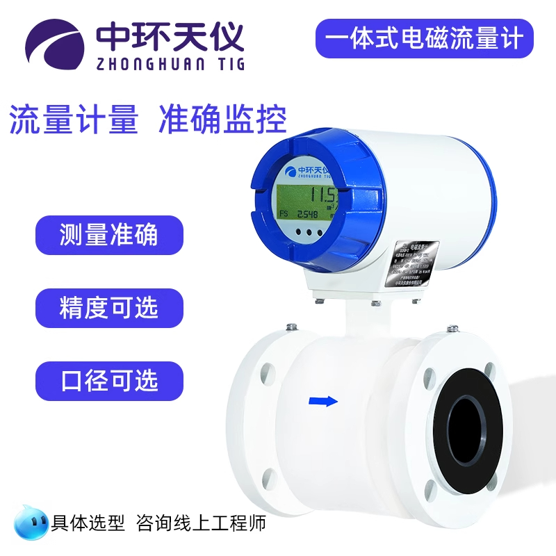 中环天仪高精度智能一体式电磁流量工业化工流量仪表支持定制